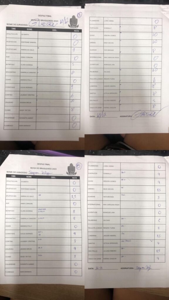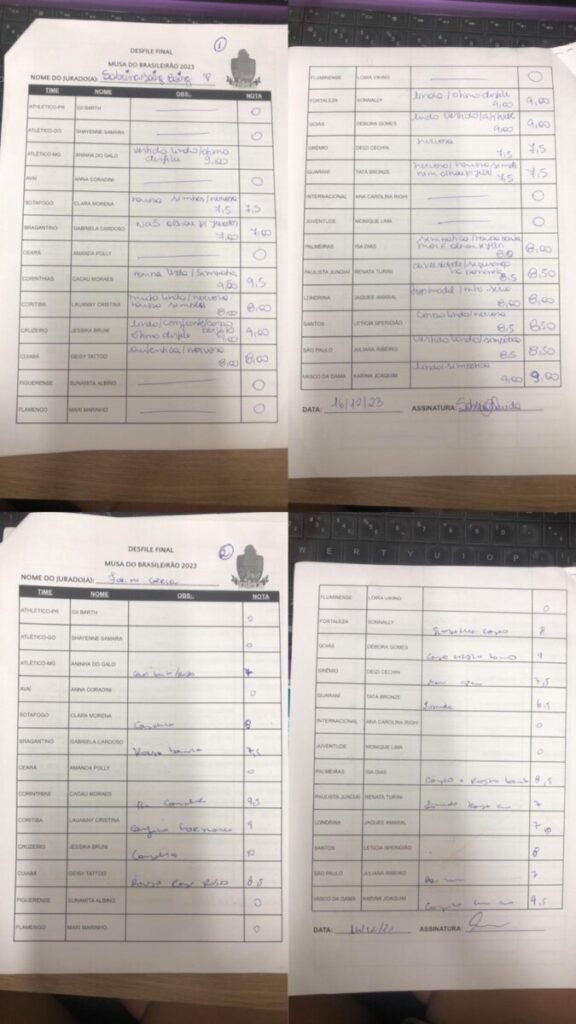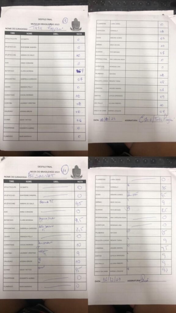 Mantendo a tradição de transparência do concurso Musa do Brasileirão, a organização torna pública as fichas de notas assinadas pelos jurados responsáveis pela eleição.