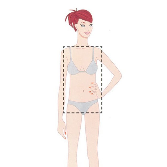 Nesse biotipo as medidas da cintura, quadril e ombros são muito parecidas. Além disso, a cintura é pouco marcada. É o corpo naturalmente por modelos do tipo “passarela”. O biquíni, nesse caso, vem para modelar o corpo, criando curvas e formas, afinando a cinturinha e aumentando quadril e bustos.