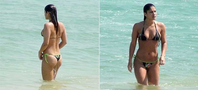 Bumbum grande – Calcinhas com tiras mais larga ajudam a equilibrar a proporção com a cintura. Evite estampas na horizontal para não deixar tudo ainda maior.
