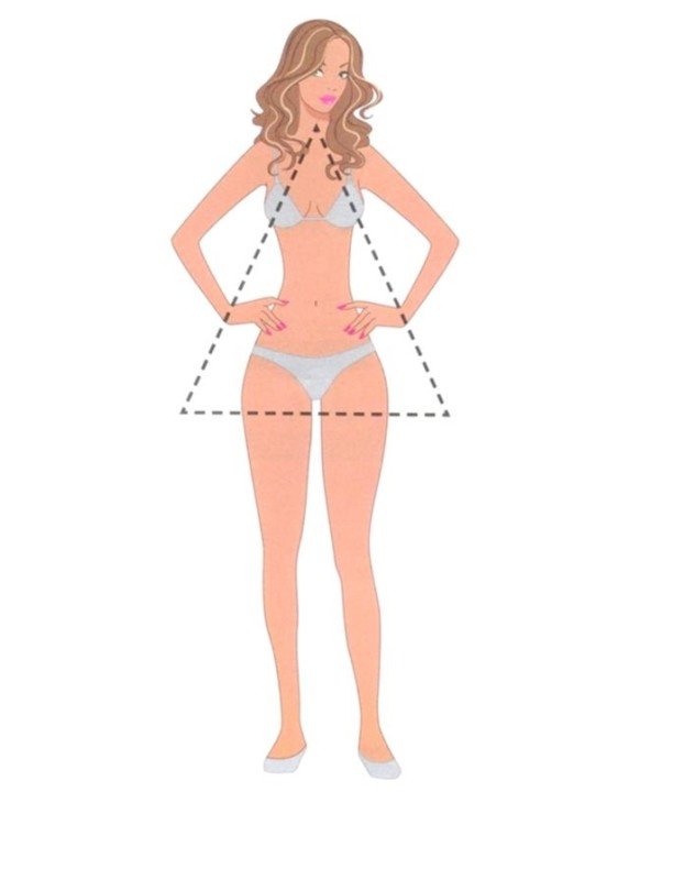 Como o próprio nome diz, esse corpo representa o inverso do tipo pêra citado acima. Aqui os ombros são mais largos que a cintura e o quadril, portanto ao escolher o biquíni você deve inverter os papéis: dar volume a parte debaixo, e ser discreta na parte de cima.