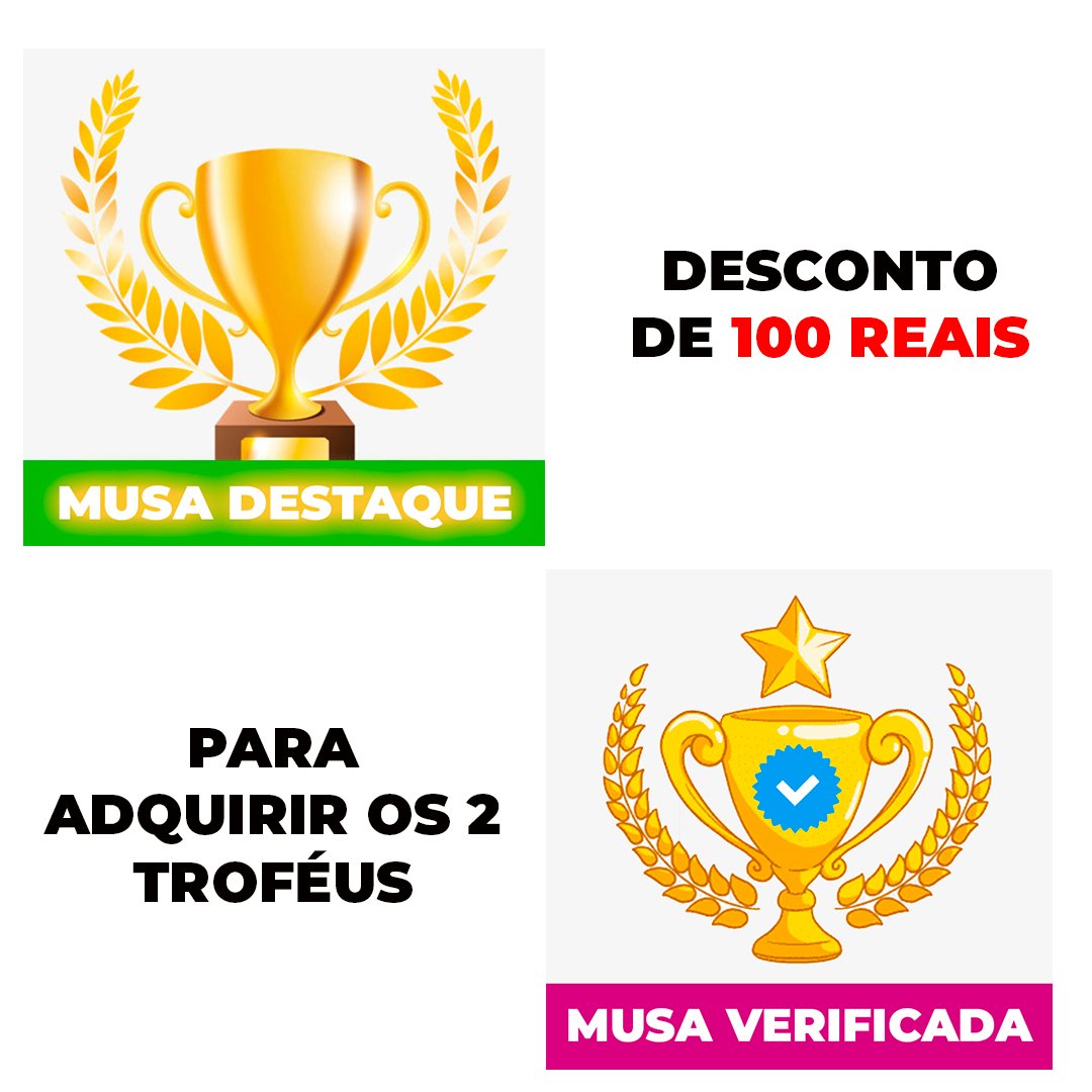 Desconto de 100 reais para adquirir o Troféu Destaque em conjunto com o Musa Verificada e ter destaque total em nosso site