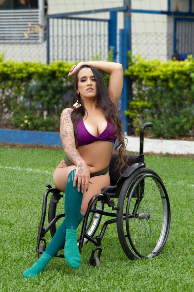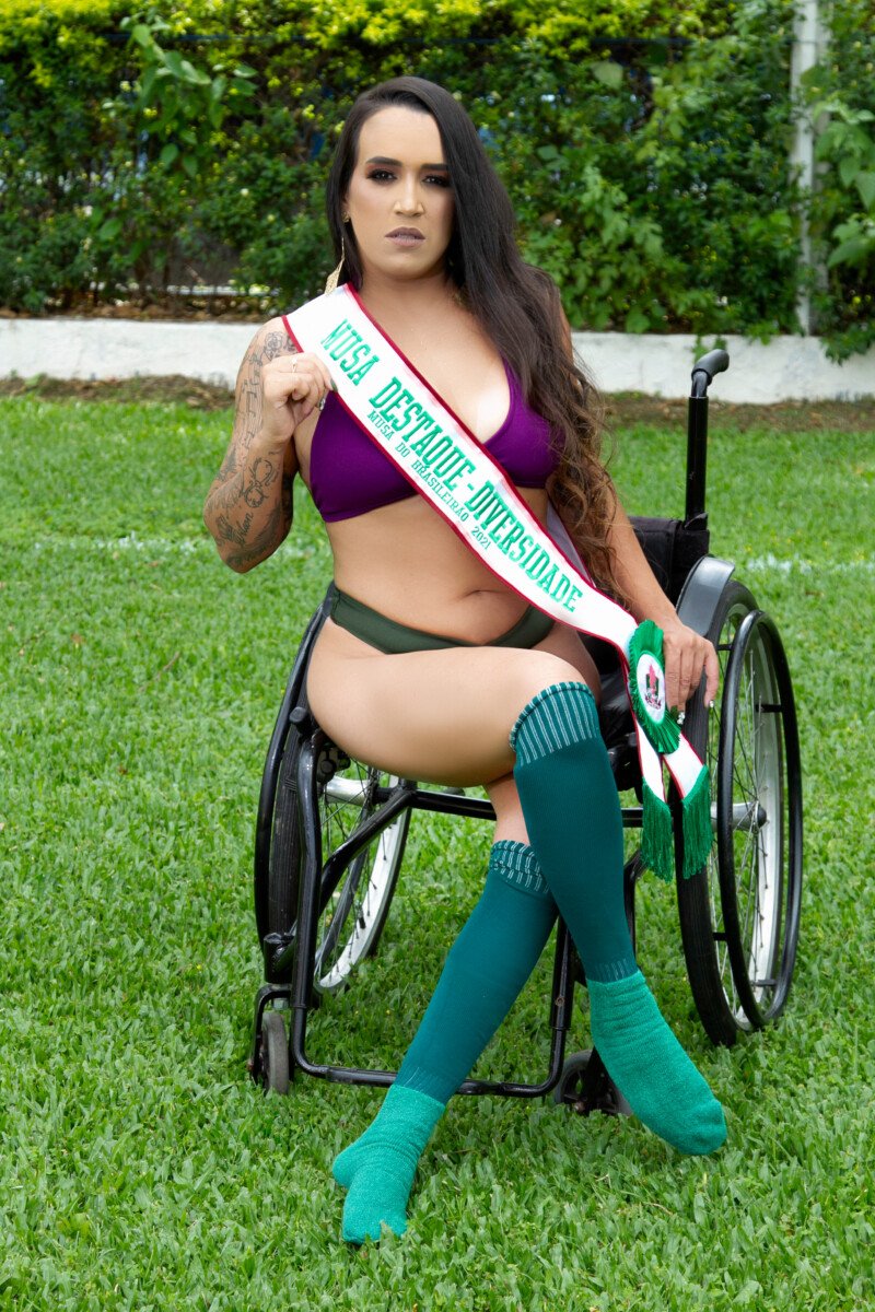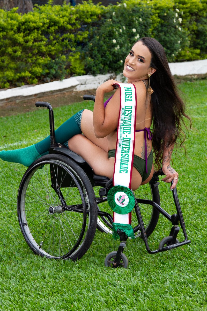 R: Eu decidi depois de não ter visto uma cadeirante representando um time. Eu entrei em contato por e-mail com a produção e me responderam que seria muito bem vinda, me trataram super bem e seria a primeira a participar do projeto. Foi o que me motivou ainda mais a dar sequência nesse desejo para mostrar um pouco mais da Diversidade que norteia o concurso.